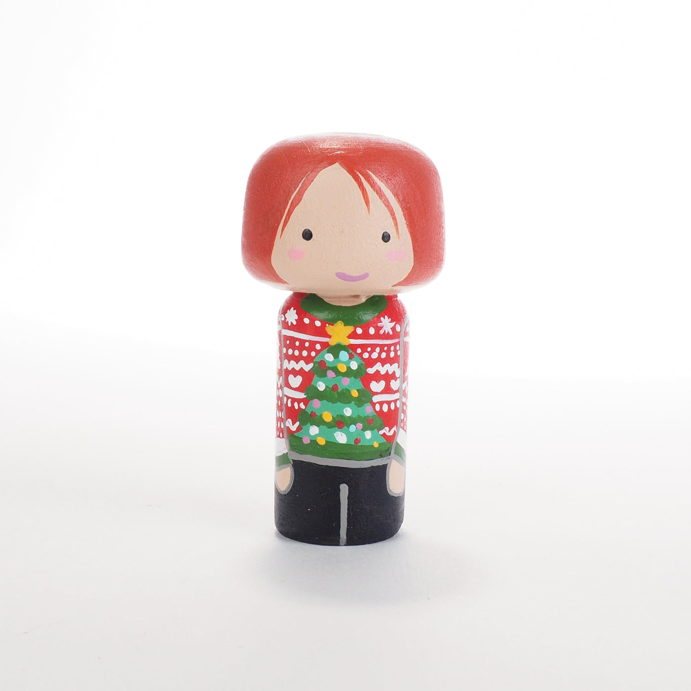 Ugly Christmas Sweater Family Peg Dolls and mini Kokeshi - Mini Family Portrait